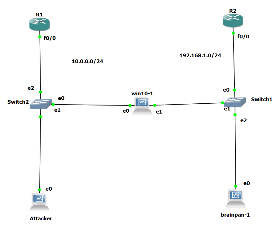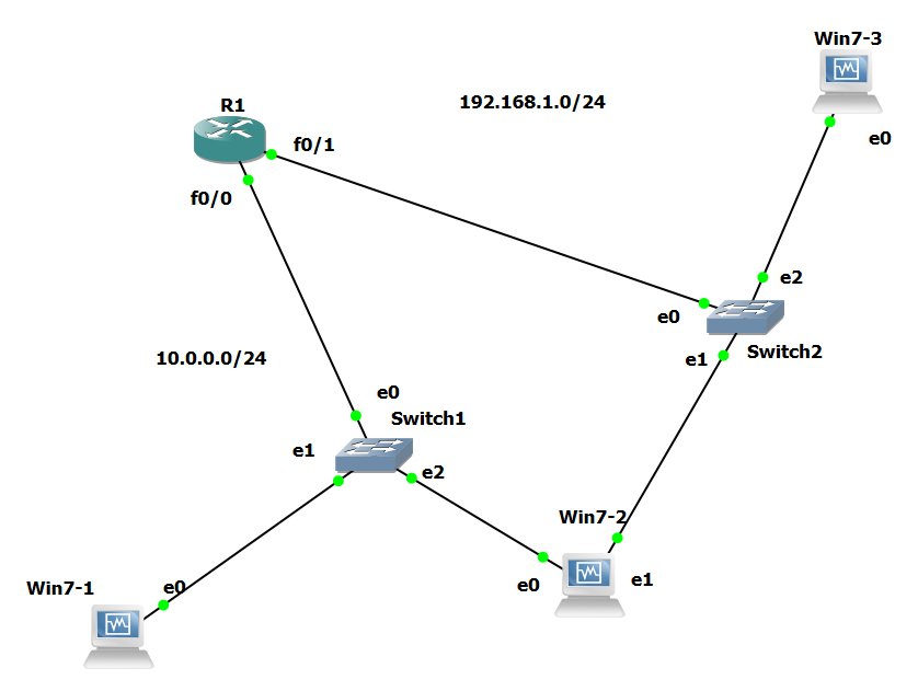 You can make this topology with one router, but I made it like this so we can understand the concepts better.
