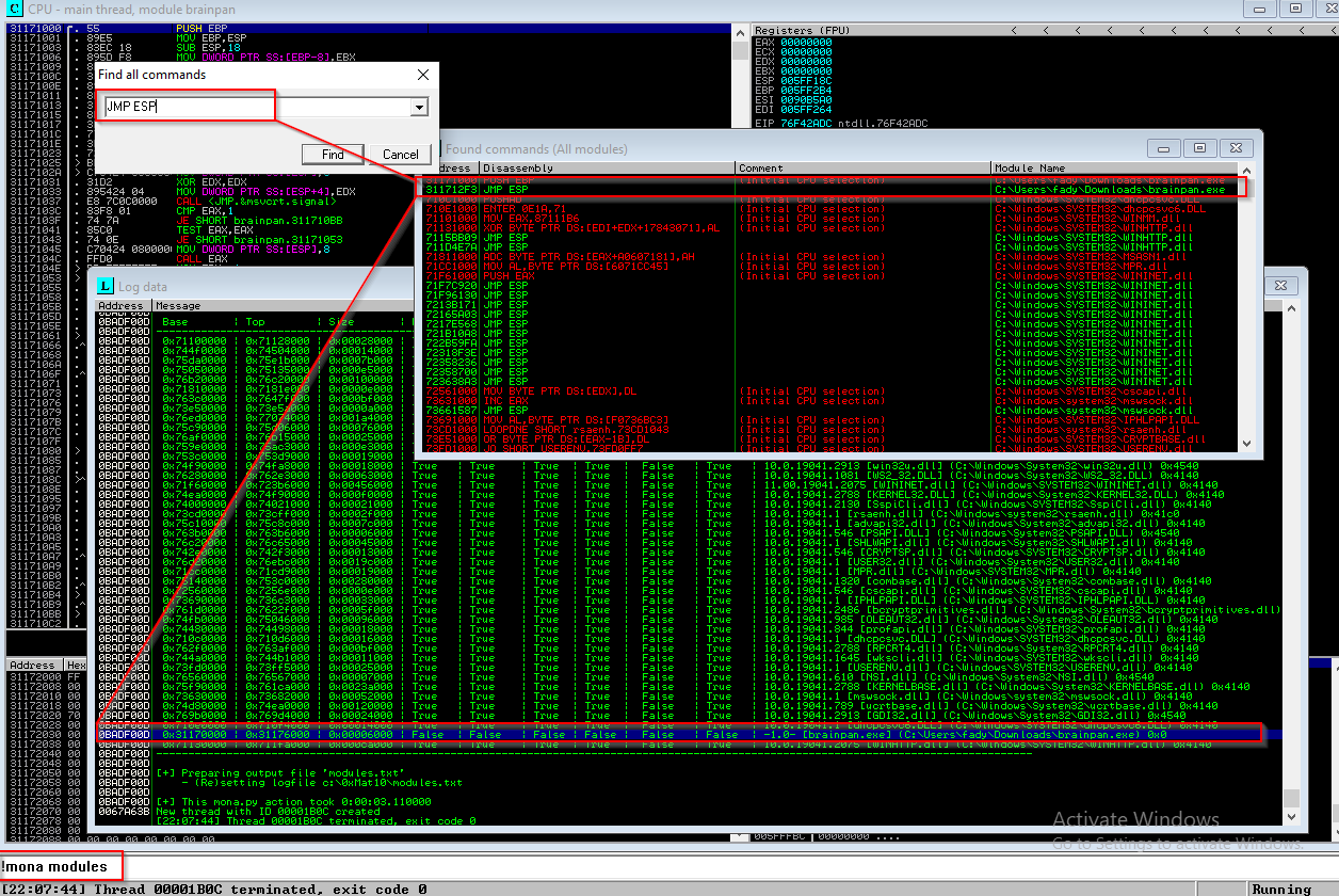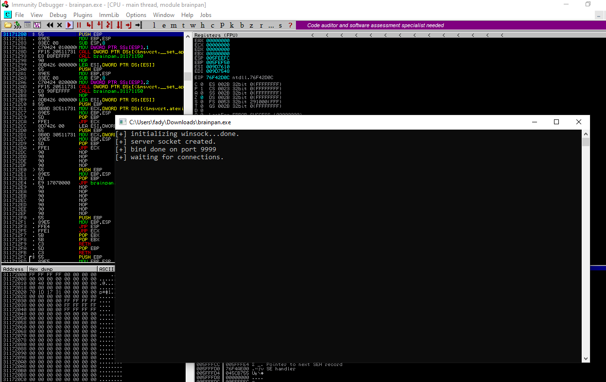 Okay it’s clear now it’s a BOF challenge and the brainpan.exe file is the service that runs on the 9999 port , so let’s exploit it into The Windows 10 machine