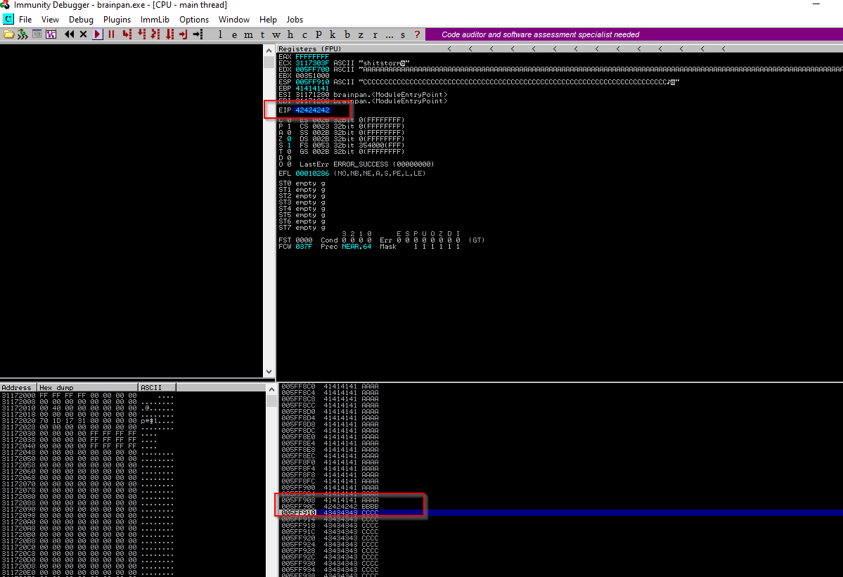 [________________________ WELCOME TO BRAINPAN _________________________] ENTER THE PASSWORD